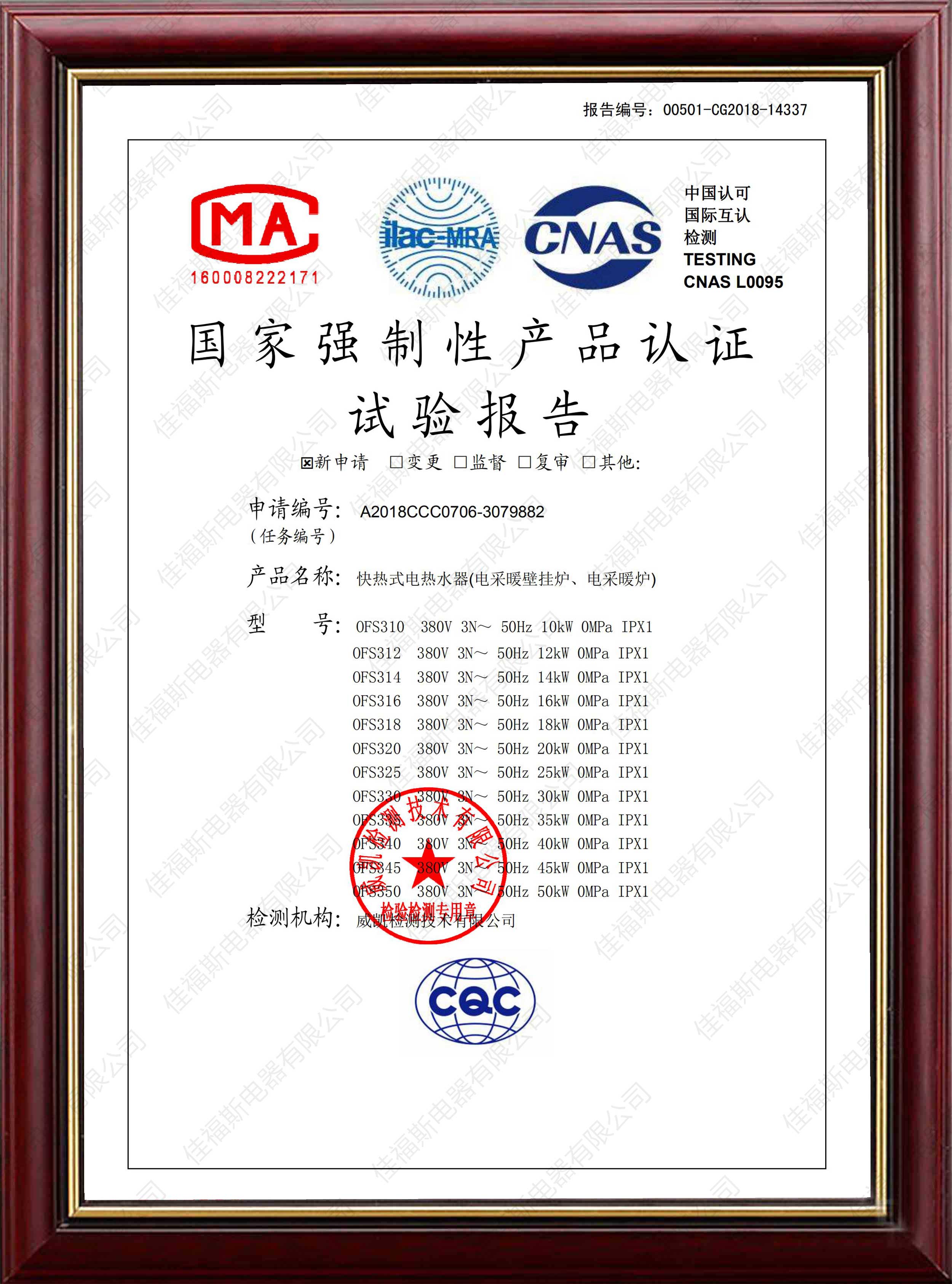 佛山市順德區佳福斯電器有限公司,坐落在家電之都 ——順德,是一家集科研、 新產品開發(fā)的大型家電生產基地, 專門從事研發(fā)、生產世 界一流的采暖設備、熱水設備等供暖供生活熱水的電器產品,成功開發(fā)了四大類一百多 個品種規(guī)格的產品, 廣泛應用于家庭、學校、機關、部隊、醫院、賓館、工廠宿舍等。 其產品安全、高效、方便、節(jié)能、環(huán)保,深受國內外廣大用戶的喜愛。 佳福斯以創新科技為目標,本公司投入巨資, 耗時多年,終于達到 了改寫電加熱技術的新篇章,它的安全性和耐用性是現在全世界同類 產品無可比擬的,佳福斯擁有大規(guī)模的生產工廠,專業生產電加熱的 核心部件加熱體, OEM貼牌以及品牌機, 它通過強制性認證, 結構獲得專利, 通過電加熱技術的改寫以及新思路,佳福斯將引 領供暖供熱水設備進入新潮流,為人類共享快樂,真正帶給人們溫暖。